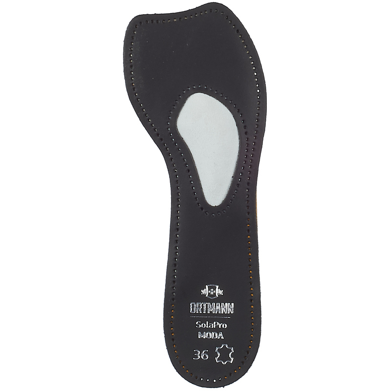 Кожаные ортопедические бескаркасные полустельки ORTMANN MODA станут прекрасным выбором для любительниц обуви на каблуке выше 7 см. Это уникальные стельки созданы для девушек, которые привыкли к ощущению комфорта в течение всего дня, но при этом не хотят отказываться от любимой пары туфель на высоком каблуке. Данная модель стелек эффективно разгружает передний отдел стопы, что особенно важно для поклонниц обуви на высоком каблуке. Специальная вставка из замши на поверхности стельки создаёт устойчивость при ходьбе и обладает противоскользящими свойствами. Самоклеящееся покрытие обеспечивает устойчивое положение стельки в обуви, а верхнее покрытие из натуральной кожи даёт чувство максимального комфорта в течение дня.